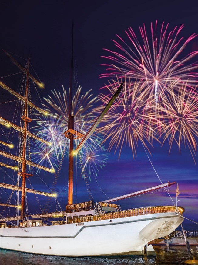 這艘有著100多年故事的非遺帆船是當晚唯一一艘可以漂浮在煙火燃放區的餐船,直面第一輪煙火。因為跨年夜的煙火秀,河面的燃放段會清場,也就是說整個河景煙火秀是你獨享。當晚餐船上有主題派對和餐飲套餐,還有樂隊和DJ表演。