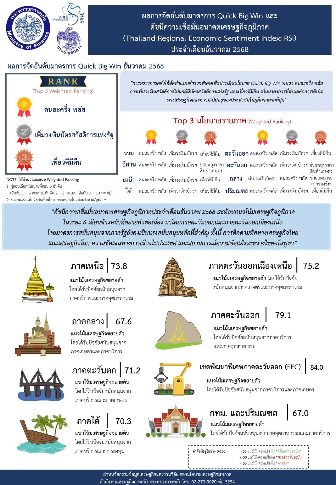 【泰國新聞報導】財政部財政經濟辦公室主任、財政部發言人威尼於今(29日)表示,2025年12月的區域經濟信心指數反映未來6個月,各地區經濟前景,整體仍將持續擴張,其中以東部地區和東北地區表現最為突出。