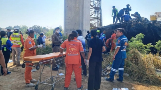 【泰國新聞報導】2026年1月14日,呵叻府詩琴縣詩琴鎮塔農闊村發生一起嚴重事故,正在修建的高鐵高架橋起重機倒下,正好壓到下方駛過的一列火車,兩節車廂損毀,事故造成至少22人死亡、超過50人受傷。