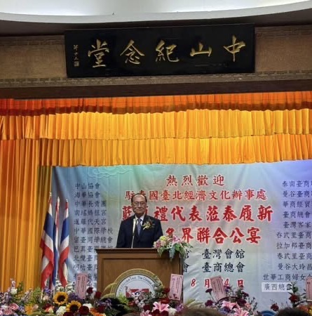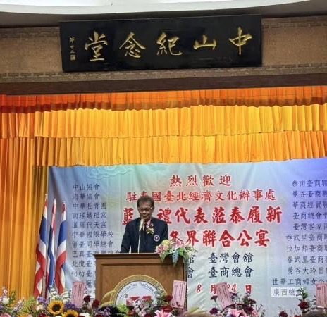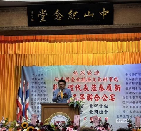 【泰國新聞報導】泰國華僑協會、泰國中華會館、泰國台灣會舘、及泰國台灣商會聯合總會,於8月24日晚間假泰國中華會館,盛大舉辦「歡迎駐泰代表處藍夏禮代表履新聯合晚宴」。