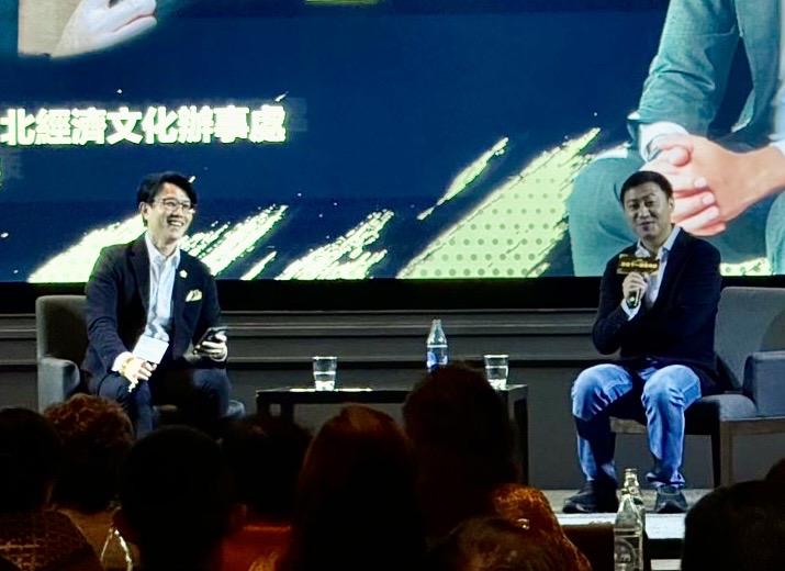 (駐泰國代表處副代表董思齊「左」擔任主持人,與快遞巨頭Flash創始人李發順「右」進行對談。圖片來源黃純康)