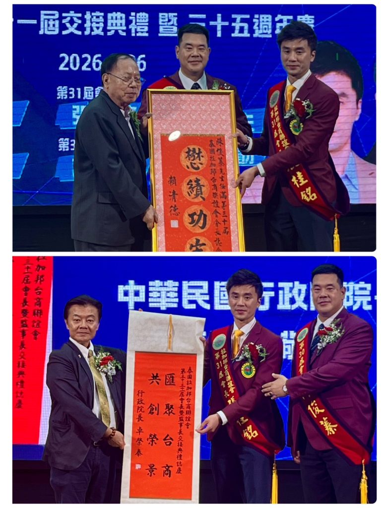 臺中市議員施志昌表示,從創會至今的發展歷程令人感動。我們在臺灣、在臺中,也一定會持續給予支持與祝福,成為大家最堅強的後盾。泰國臺灣商會總會長陳漢川指出,過去35年的累積得來不易,交接不僅是榮耀的傳承,更是責任的延續與再出發的起點,也讓組織成為最具溫度與情感的臺商團體。