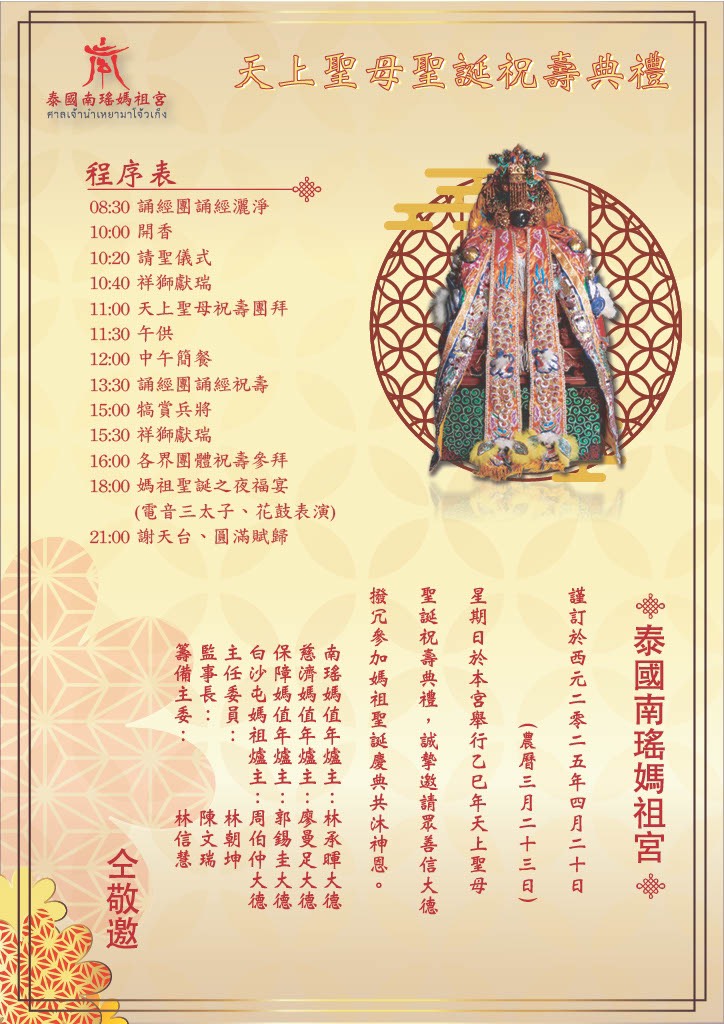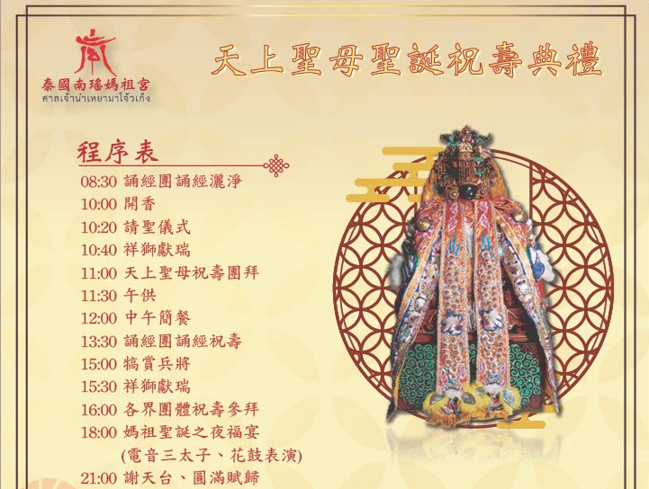 泰國南瑤媽祖宮 20日將辦慶典活動