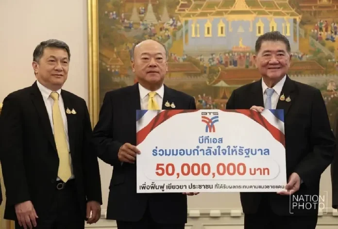 【泰國新聞報導】泰國BTS集團(曼谷大眾運輸公司 捷運)於昨(6日)宣布,捐贈總額1億銖,支援受邊境衝突影響的民眾及保家衛國的軍人。這筆捐款將分為兩部分,其中5,000萬銖通過政府,用於邊境地區民眾的復原與補助;另5,000萬銖將直接支持泰國軍隊。