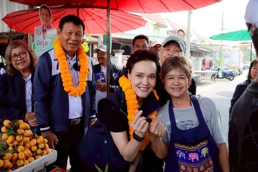 蘇帕吉與阿杜協同競選團隊從市場頭走到市場尾,深入位於暖武里府邦博通縣邦拉克帕塔那村(Ban Bua Thong Bangrak Pattana)的社區,與民眾近距離接觸。蘇帕吉表示,沿途看到商販們熱情歡迎,令她感到非常開心,也希望現場氣氛能更加熱鬧。