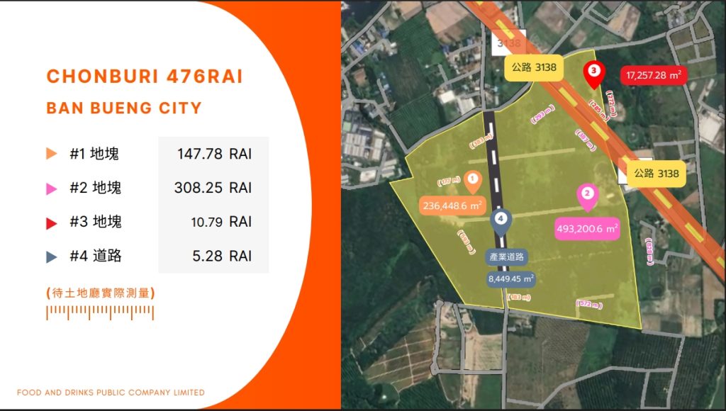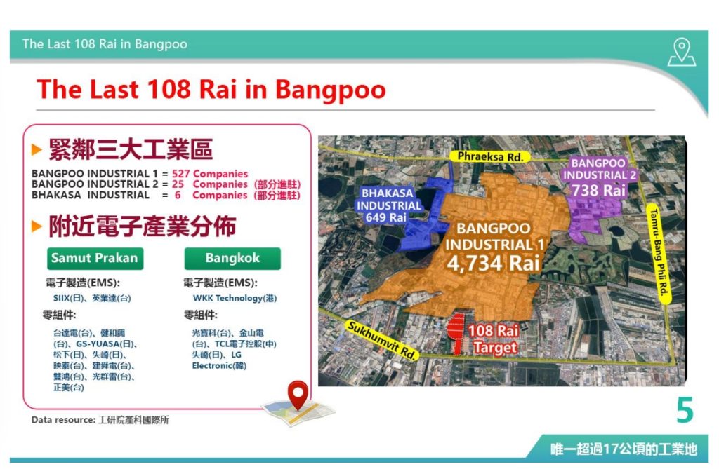 第二塊土地的占地面積為108萊,每萊售價1,000萬銖,地點即位於Bangpoo工業園區內。