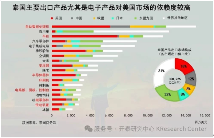間接影響:預計泰國對其他市場的出口將受到更大影響,原因包括: