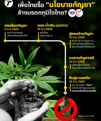 政府24日將大麻嚴格限定醫療用途,衛生部新規要求,購買者須持醫生處方,店鋪須配備駐店醫師,違規兩次即吊銷執照。頌薩部長否認此次行動與政治變動相關,但承認最終目標仍是將大麻回歸毒品清單。分析人士指出,隨著2025年《大麻管制法》立法進程加速,泰國可能迎來更嚴格的管制時代,支持大麻合法的泰自豪黨離開聯合政府後,他們的大麻政策並不被為泰黨支持。