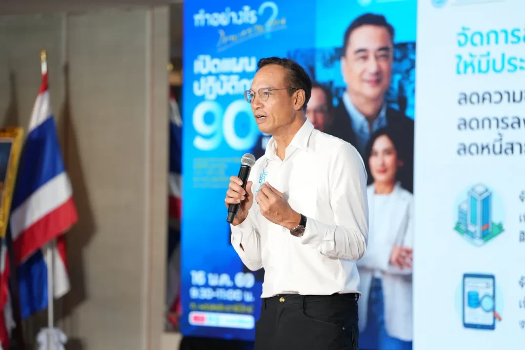【泰國新聞報導】阿披實率民主黨團隊,於今(16日)召開記者會,公佈首個90天行動計劃,提出明確績效目標:4年內泰國經濟必須至少增長5%。高舉加速改革大旗,推動10項重點任務,聚焦改革落後法律、清理部分灰色資本。
