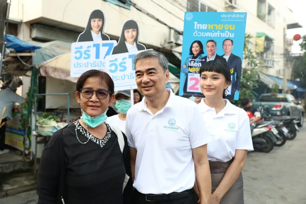 【泰國新聞報導】民主黨領袖、總理候選人阿披實於今(20日)與副黨魁卡迪、及薩克克羅提率隊前往曼谷素坤逸101/1巷一帶,會見當地民眾。為曼谷第23選區、編號17號的國會議員候選人薇拉助選。現場氣氛熱烈、民眾反應友善。