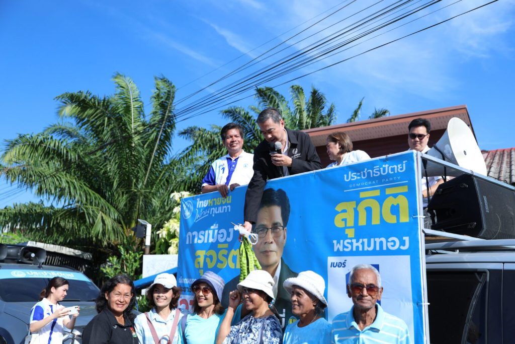 【泰國新聞報導】民主黨黨魁阿披實於今(30日上午9時30分)協同黨內高層一同前往甲米府孔通生鮮市場。與當地民眾會面,協助黨內候選人競選活動,爭取民眾支持民主黨。