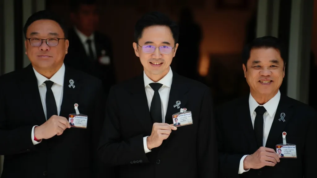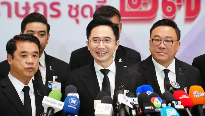 當天為泰黨由三位被提名為總理候選人的人物帶隊前往報到,包括育沙南、素里亞、朱拉蓬、以及總共16名議員完成向國會報到的程序。