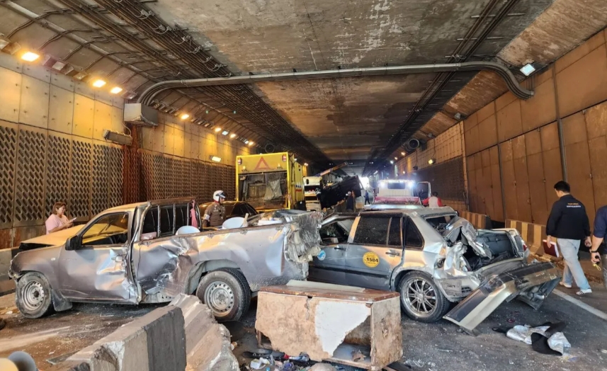 【泰國新聞報導】普吉府一處隧道23日發生交通事故,一輛運載水泥樁的卡車,因剎車失靈在隧道內失控,導致16輛車連環撞,並導致1人受傷。
