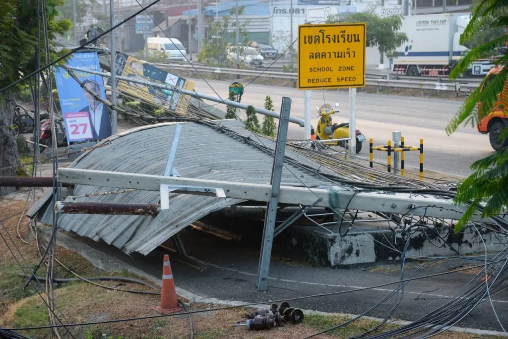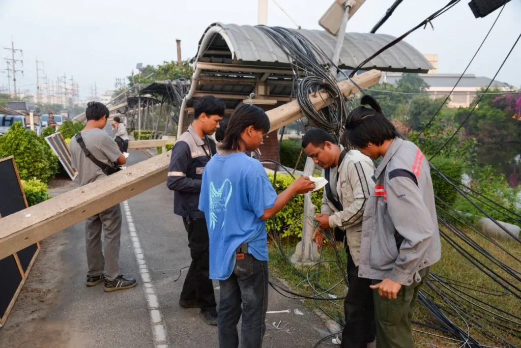 曼谷電力局(MEA)電氣工程師巴素通在完成損壞勘查後表示,受損電線桿線路起始於北欖府邦普城醫院(Muang Samut Bang Poo Hospital)前的彎道處,一直延伸至邦普81市政巷,總長度近2公里,共有70根、高12米的電線巷受損。