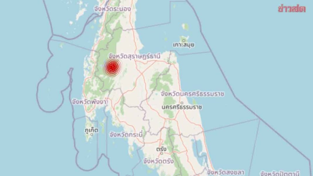 【泰國新聞報導】地質災害緊急行動中心發佈於今早(12日上午8點30分)公告,素叻他尼府班塔坤地區發生3.2級地震,起因為空馬瑞斷層群(Klong Marui fault group)滑動。