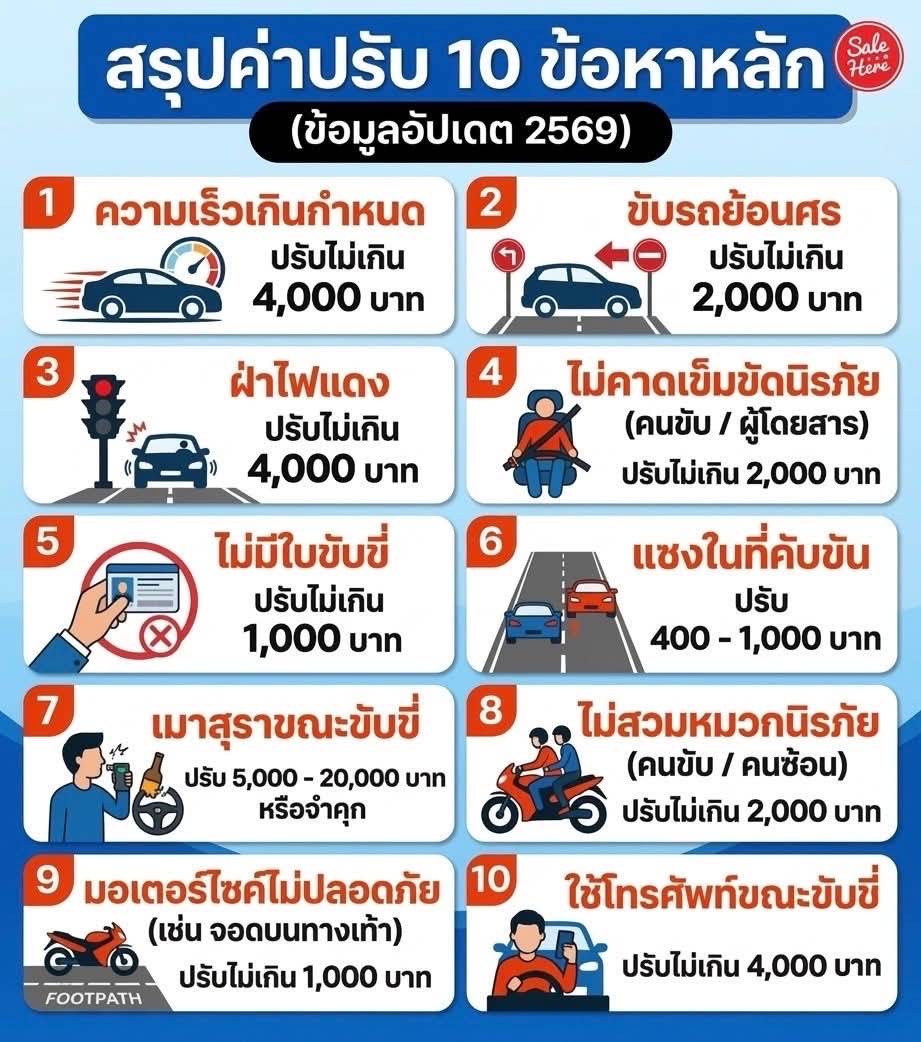 【泰國新聞報導】10項交通違規行為開始嚴格執法,並加強罰款力度,從 2026年4月1日起正式執行。