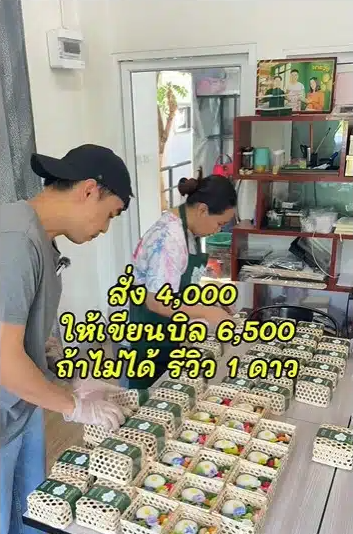影片中甜點店店家敘述,一名自稱政府機構的客戶要求將發票金額從4,000銖,虛增到6,500銖。店家堅持只能按實際金額開立發票,因此拒絕對方。該客戶後來再次下單。送貨當日對方再度提出虛開發票要求,店家同樣拒絕。完成交貨後,該客戶以服務不滿意為由給予1星評價。