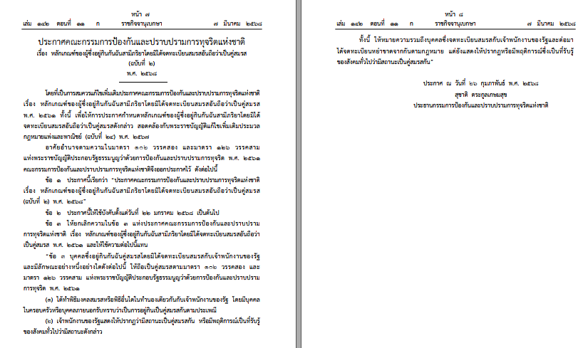 【泰國新聞報導】皇家公報網站 發佈國家反貪污委員會辦公室的公告,內容涉及未登記結婚,但以夫妻關係同居者視為配偶的標準(第2版),該公告於2024年生效。