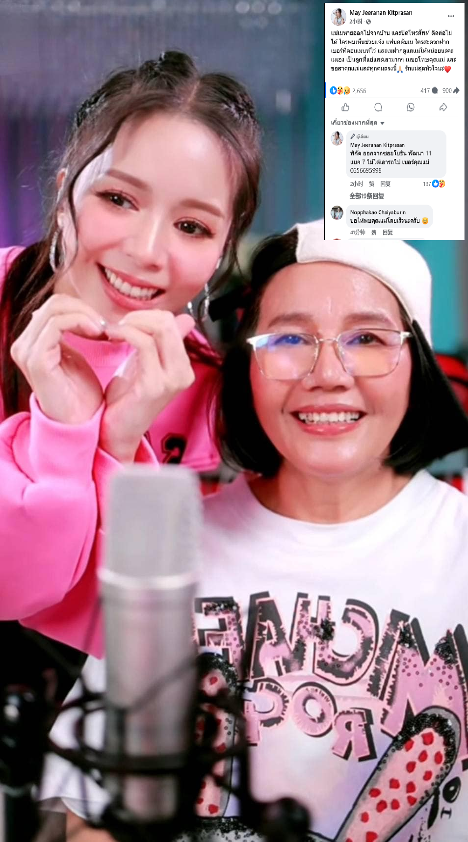 她還提供母親失蹤的地點,位於Yothin Phatthana 11巷7號岔路,母親並未開車離開。粉絲們紛紛留言鼓勵,希望她保持冷靜,不要放棄,等待與母親重逢,並勸她不要做出任何衝動的行為。