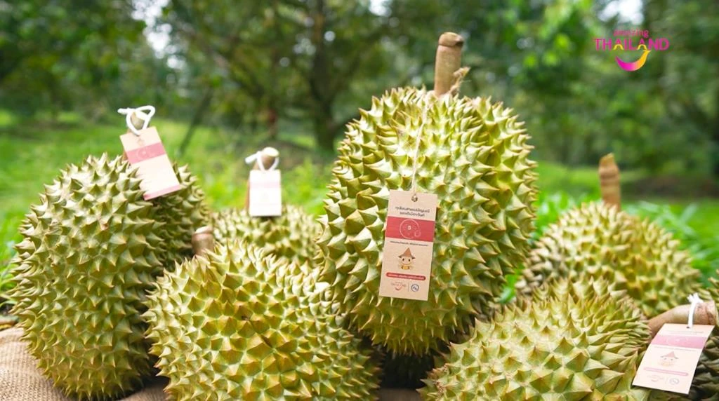 尖竹汶府擁有肥沃礦質與寶石礦帶土壤,為泰國最重要的水果產地之一,盛產榴槤、山竹、紅毛丹等多種熱帶水果。本年度特別強調「吊果足日」政策,確保榴槤自然熟成並達最佳風味,並以「克拉等級」區分品質,分為5克拉、4克拉與3克拉三種等級🌟。