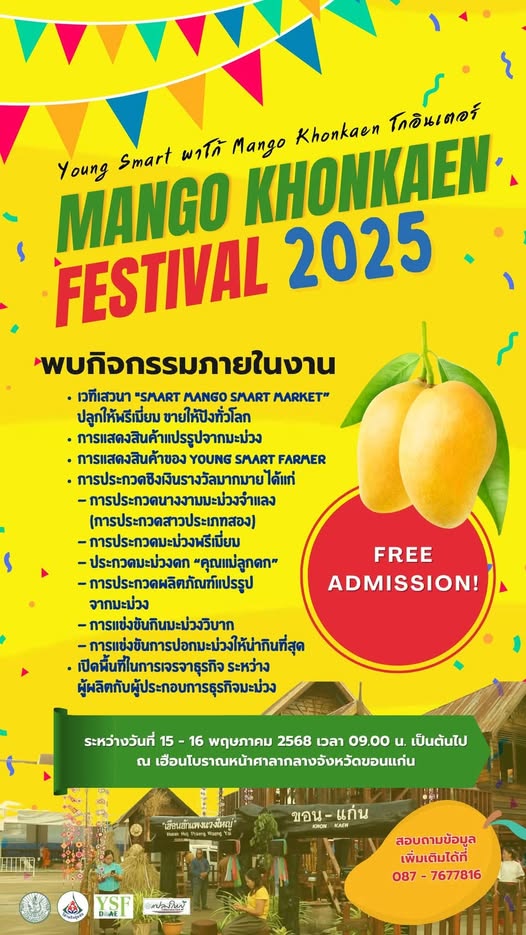 【泰國新聞報導】孔敬府副府尹西里瓦於14日下午15時宣佈啟動「2025孔敬芒果節:智慧青年引領國際芒果之都」活動。該慶典將於15日至16日在孔敬府政府大樓前古屋會場舉行,未來將升級為年度盛事。