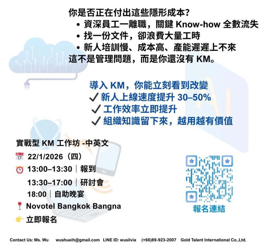 – 知識管理運作的成功案例分享。(30分鐘 14:00 ~ 14:30)